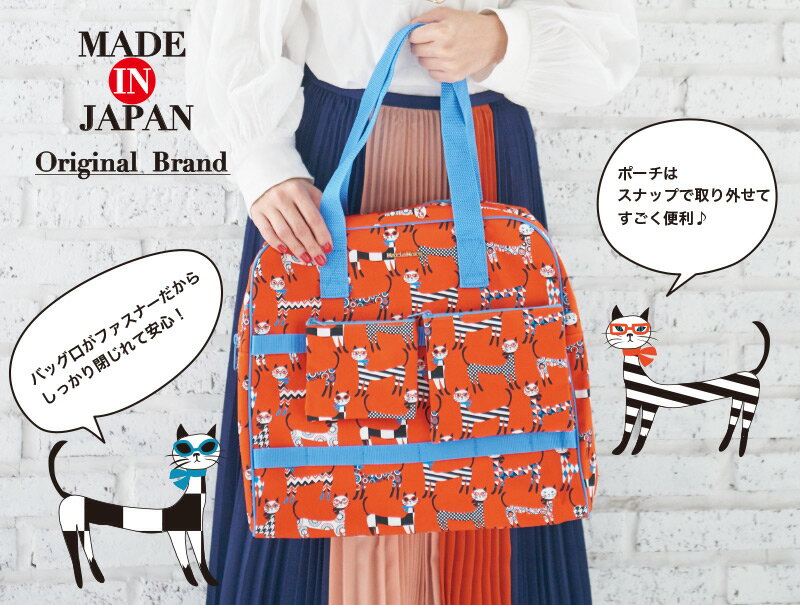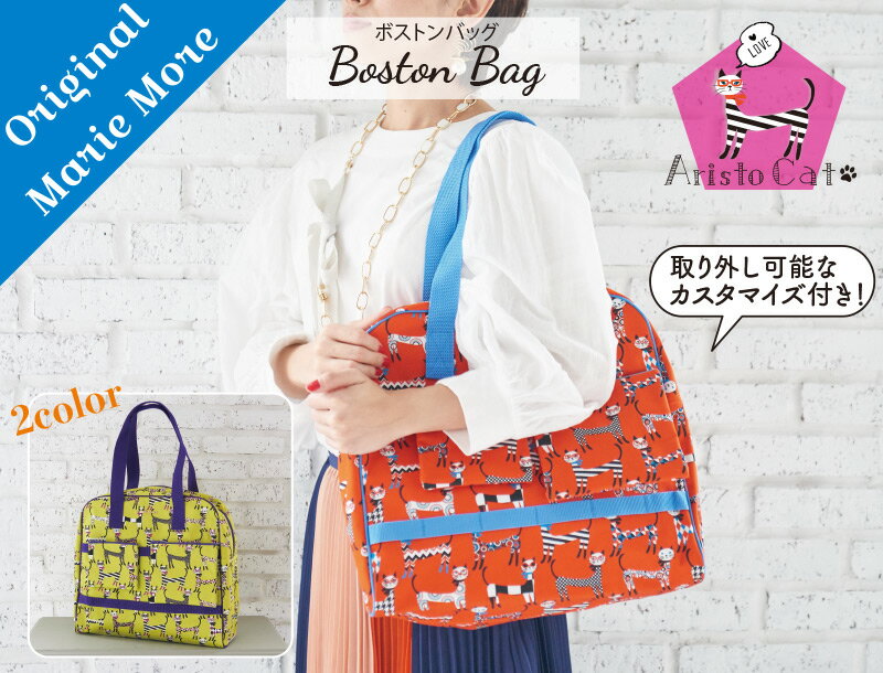 猫柄 キャット ボストンバッグ カスタマイズ ポーチ2個 レッド イエロー グリーン エコバッグ ショルダーバッグ オシャレ かわいい A4 大きめ 大容量 軽量 日本製 習い事 ジム 旅行 通学 ギフト プレゼント marie more メアリーモア #olt21SS