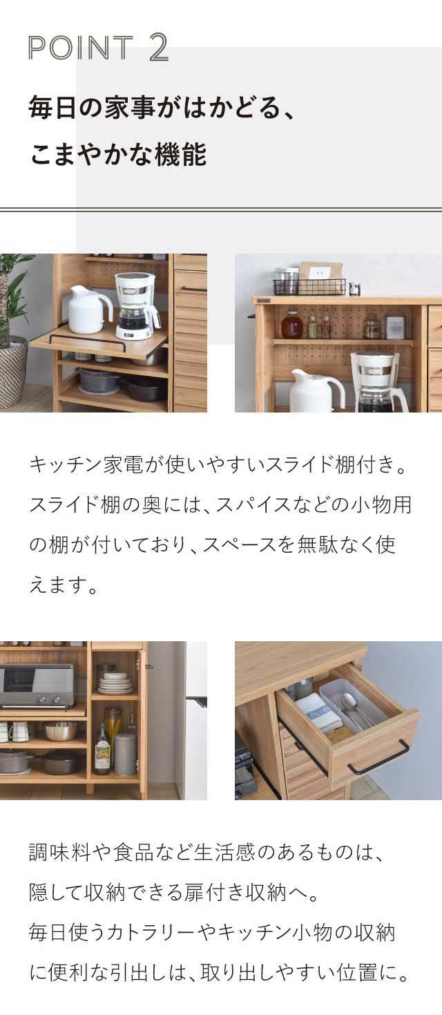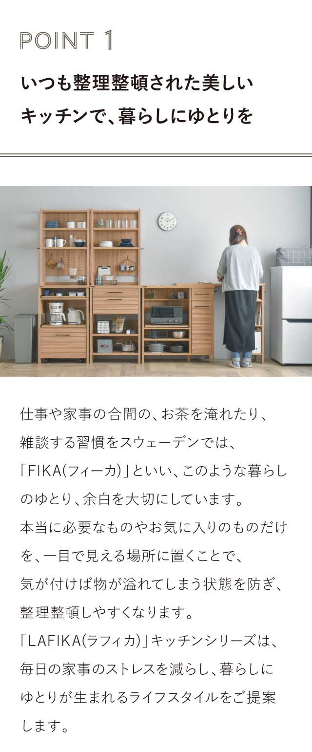 関連キーワード レンジ台/キッチンキャビネット/リビング/収納/食器棚/可動棚/引き出し/スライド棚/有孔ボード/背面化粧仕上げ/整理整頓/おしゃれ/北欧/カントリー/ガーリー/LAFIKA"