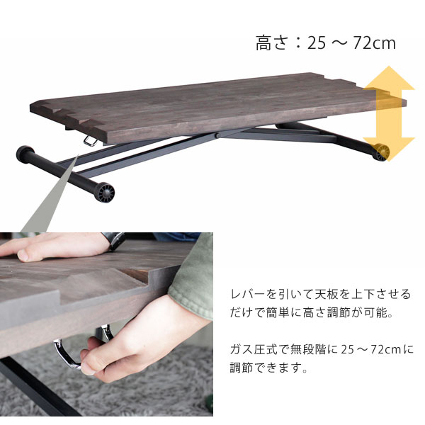 高さ25-72cmまで昇降出来るテーブルは床に座って使う時もLDで使う時も対応出来る高さで、どんな場面でも使用できます。